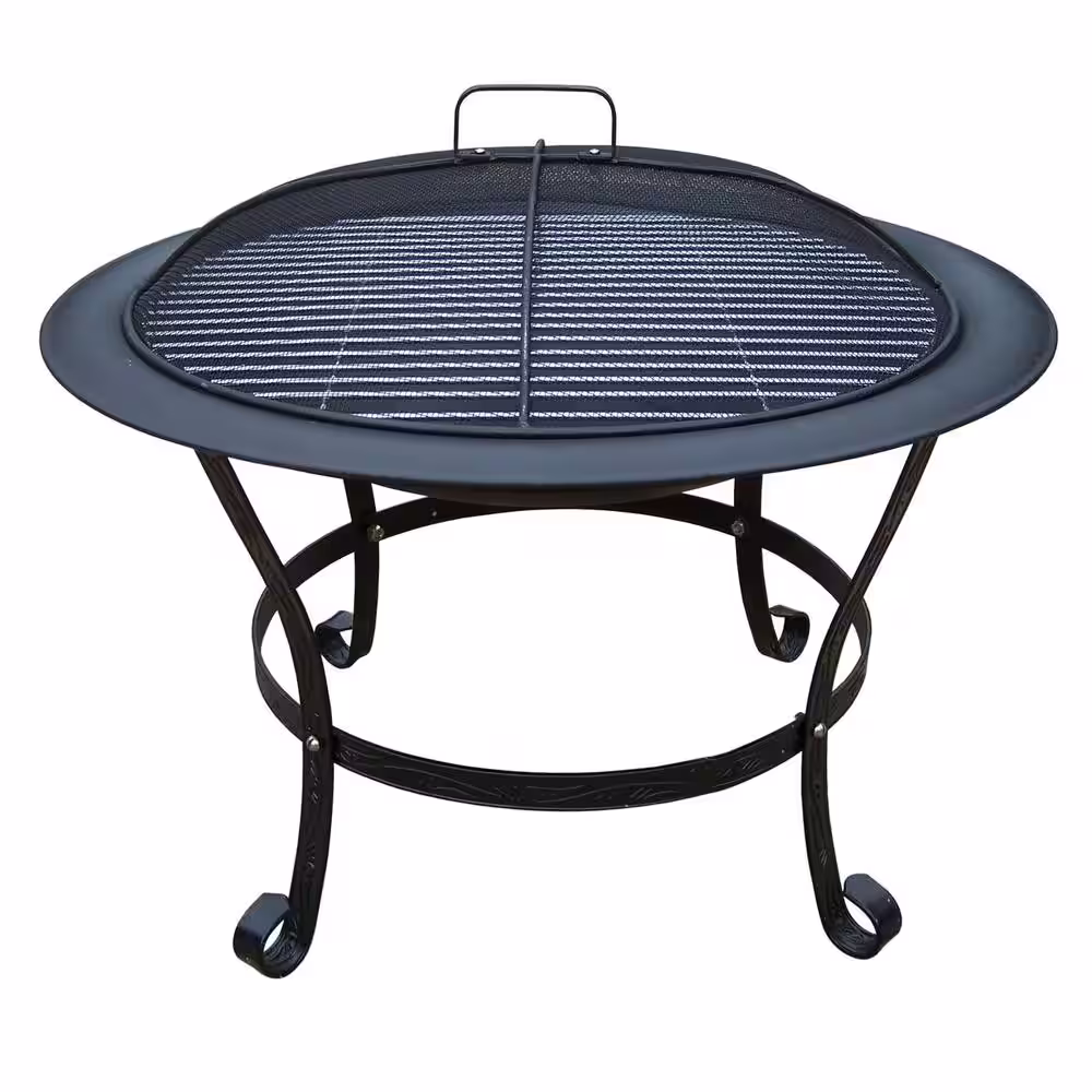 None 30 in. Round Fire Pit with Grill and Spark Guard Screen Lid