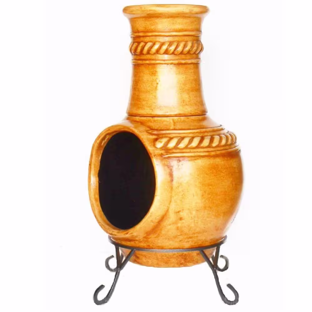 None 37 in. Clay KD Chiminea with Iron Stand (Rope)
