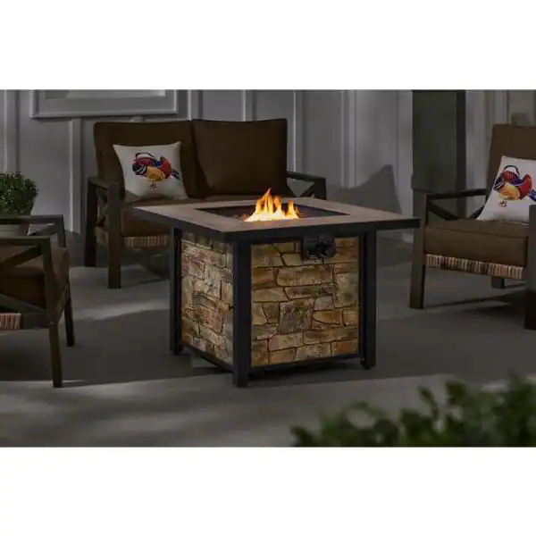 Hampton Bay 36 in. W x 25.2 in. H Square Fire Table with Porcelain Tile Tabletop