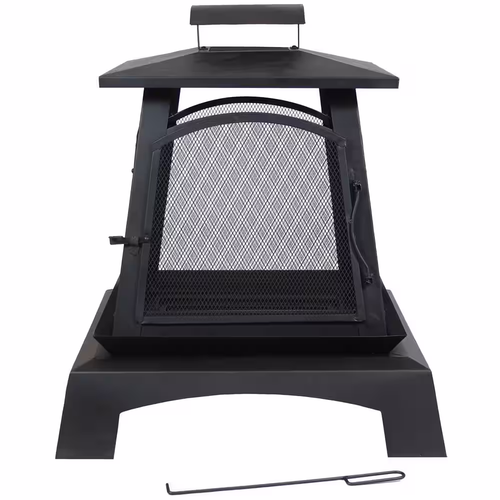 None 26 in. H Outdoor Steel Black Fire Pit with Adjustable Cooking Grid