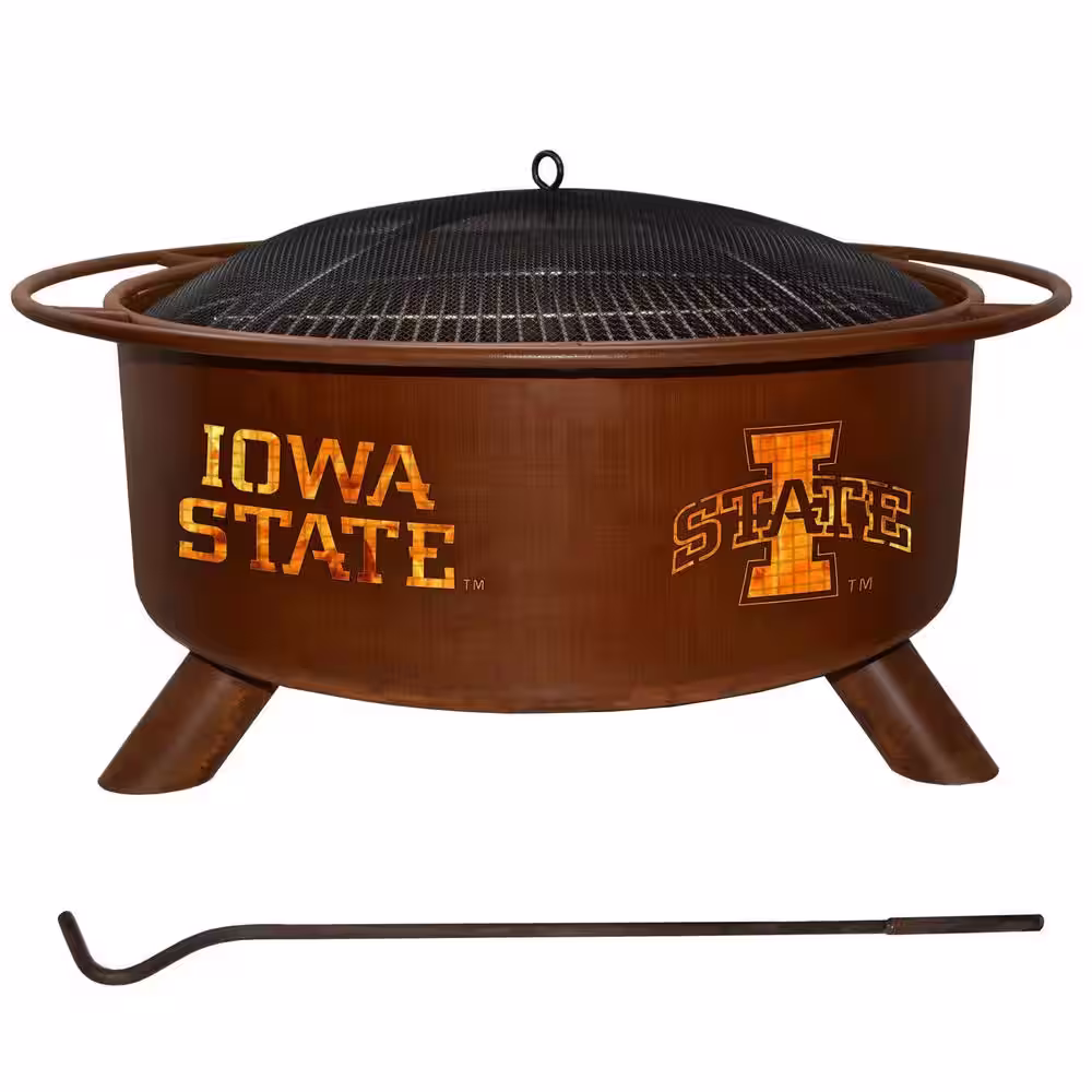 None Iowa State 29 in. x 18 in. Round Steel Wood Burning Rust Fire Pit with Grill Poker Spark Screen and Cover