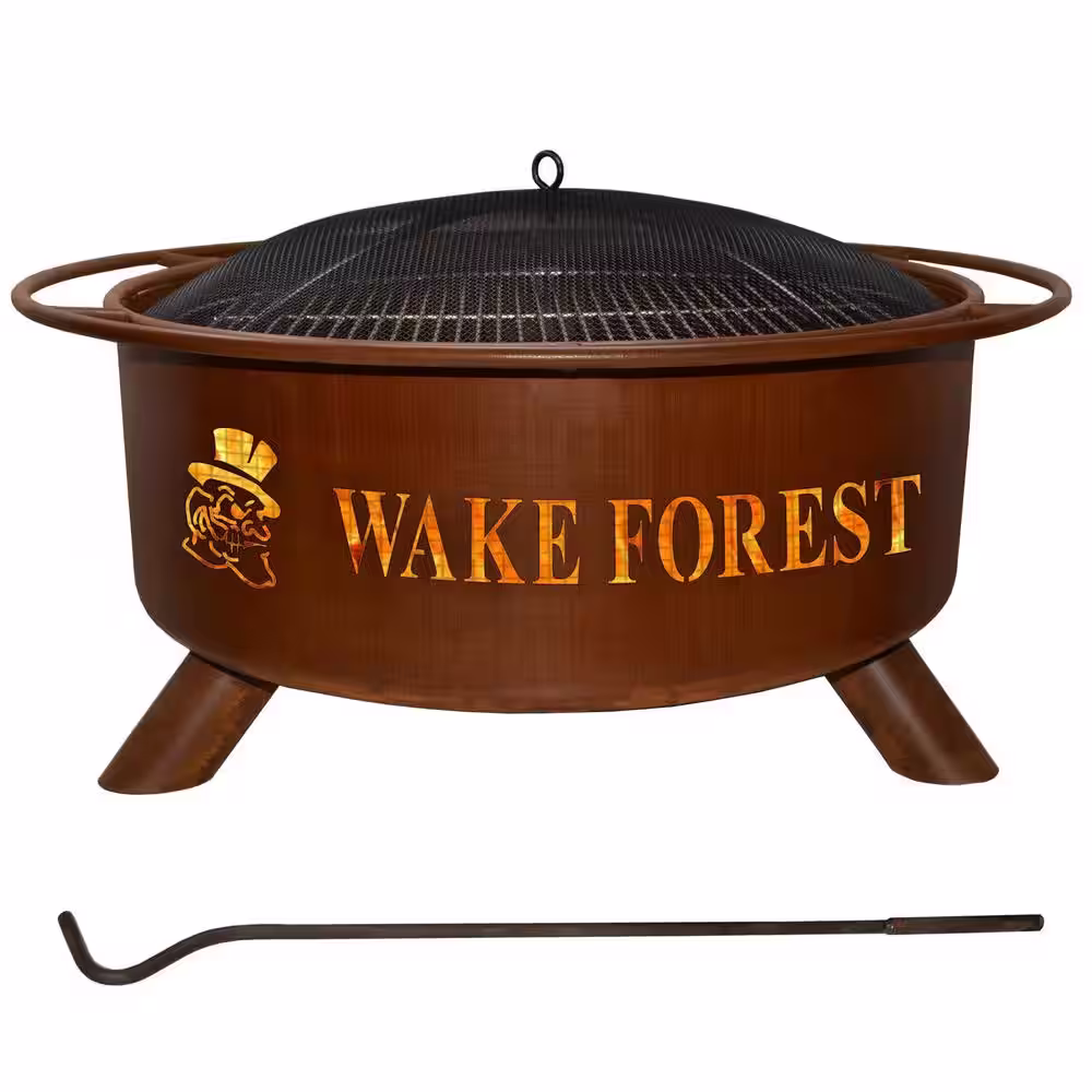 None Wake Forest 29 in. x 18 in. Round Steel Wood Burning Rust Fire Pit with Grill Poker Spark Screen and Cover