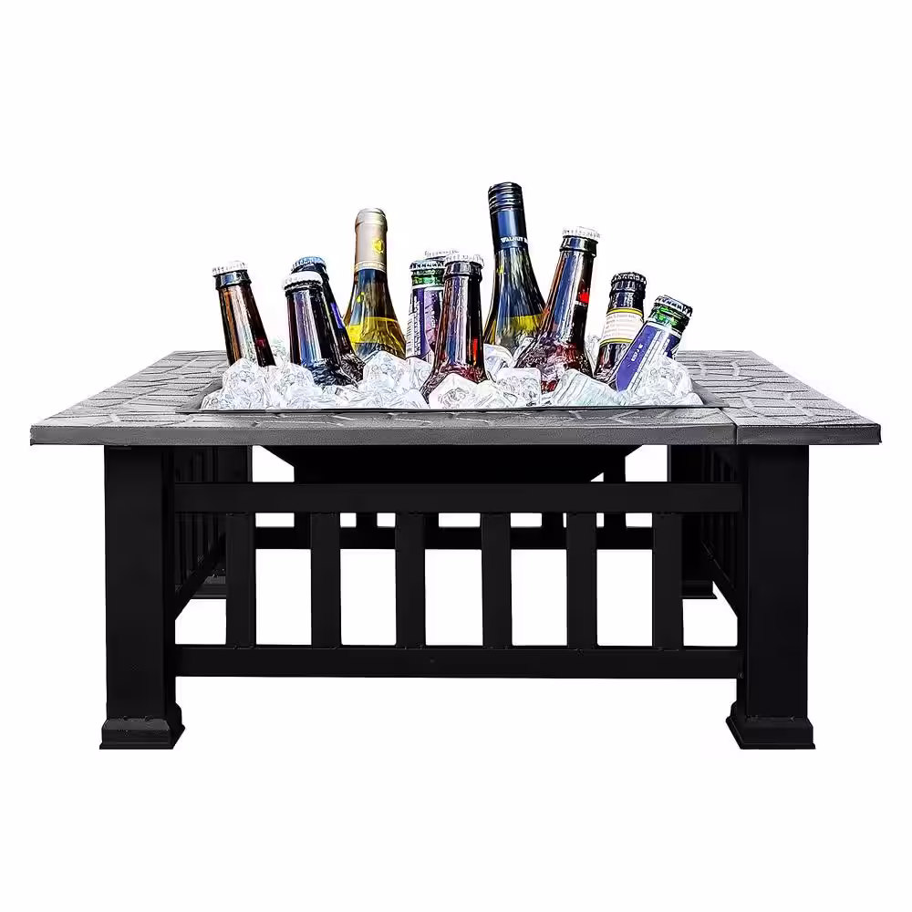 Real Flame Breton 37 in. x 20 in. Square Steel Wood-Burning Fire Pit in Gray with Spark Screen and Protective Cover