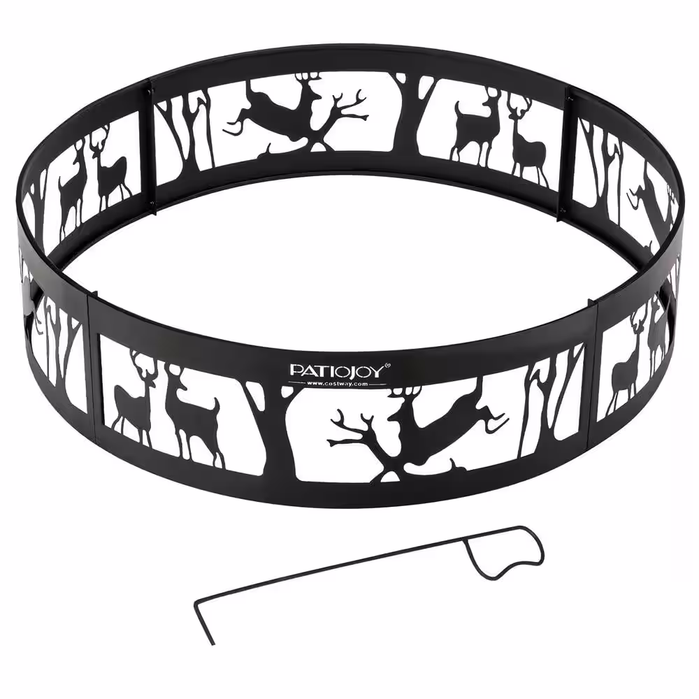 Costway 36 in. x 9 in. Round Metal Fire Pit Black Ring Deer with Extra Poker Bonfire Liner for Campfire