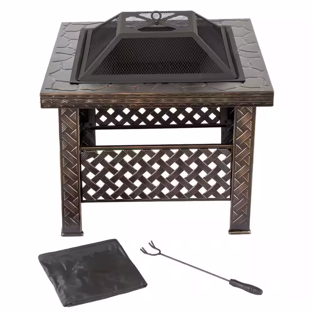 Pure Garden 26 in. Steel Square Woven Fire Pit with Cover