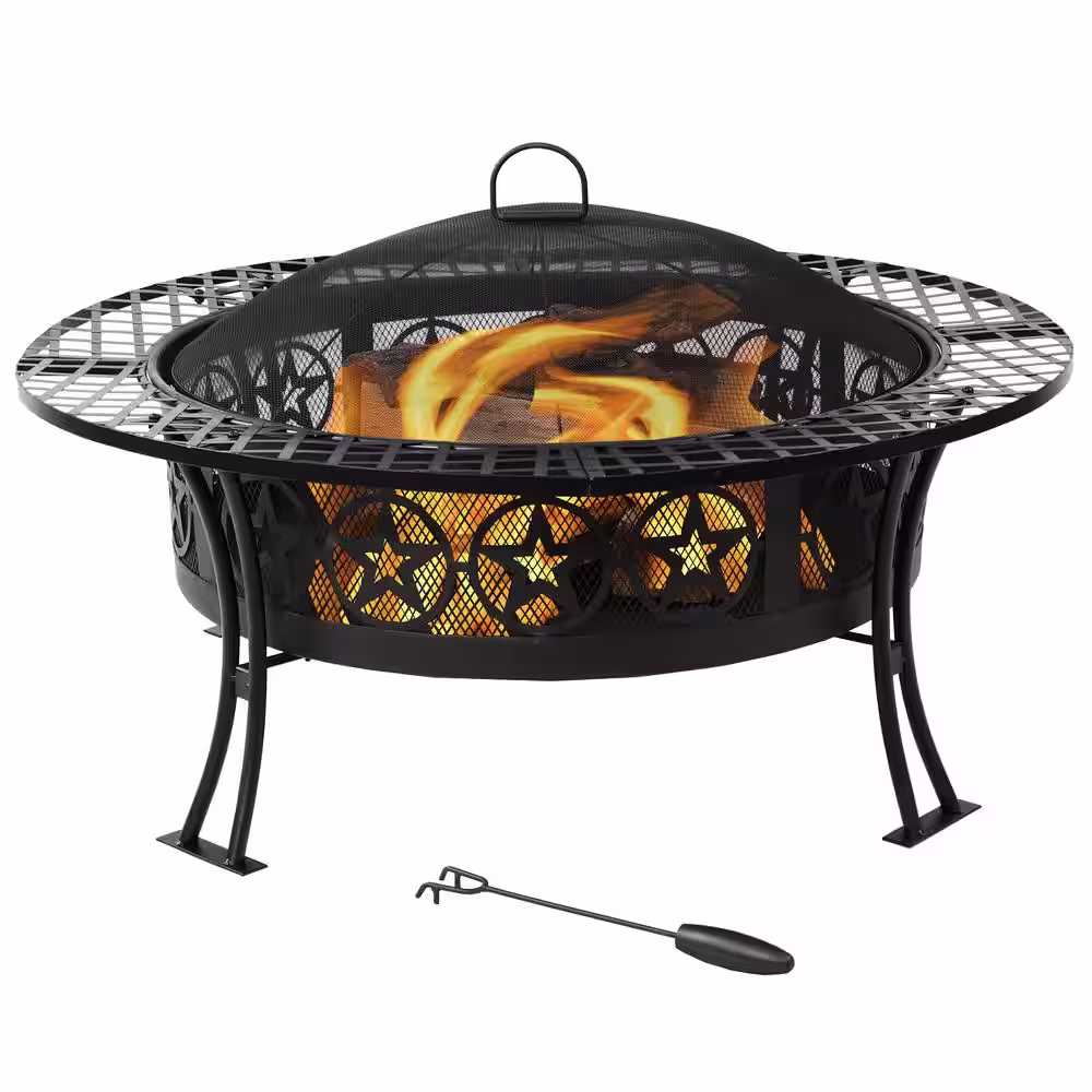 None Santa Cruz 31 in. Round Fire Pit with Lid and Poker