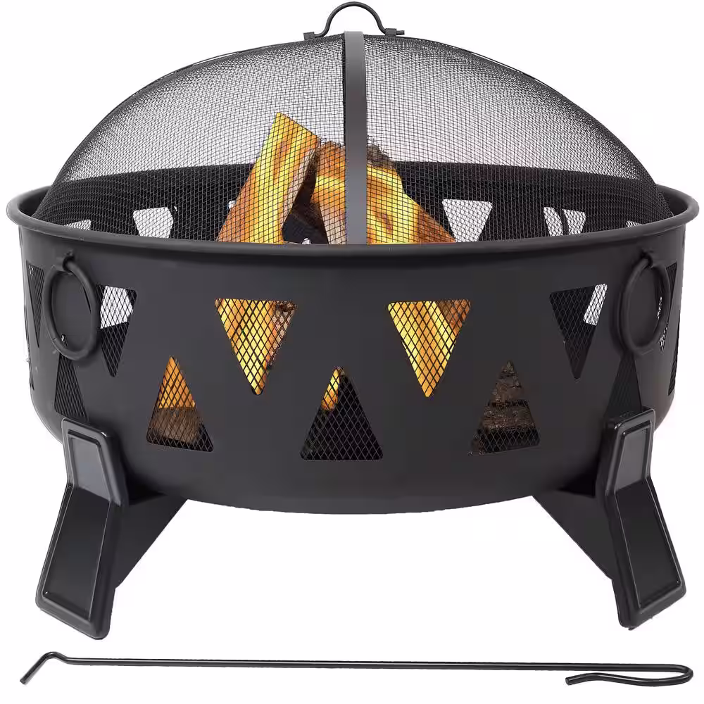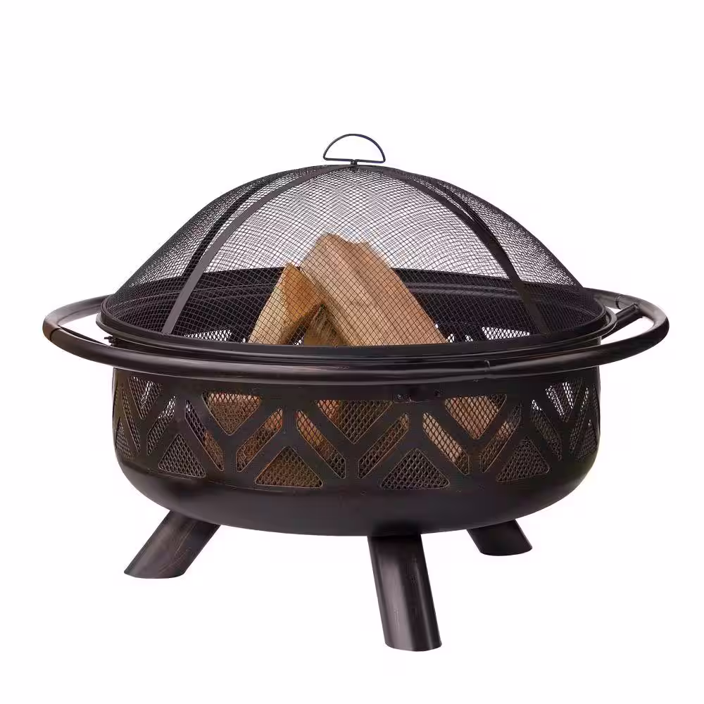 Endless Summer 30 in. D Oil Rubbed Bronze Finish Geometric Design Wood Burning Fire Pit