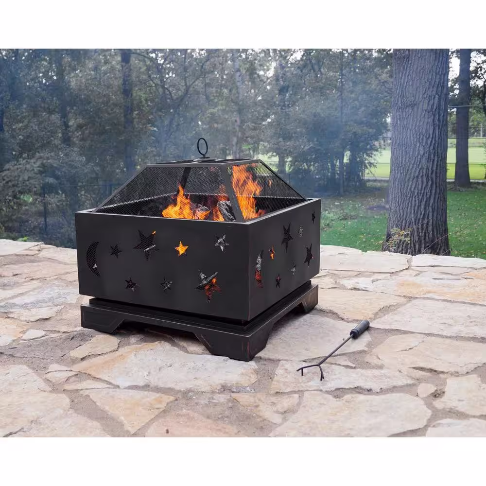 Pleasant Hearth Stargazer Deep Bowl 26 in. x 26 in. Square Steel Wood Fire Pit in Rubbed Bronze