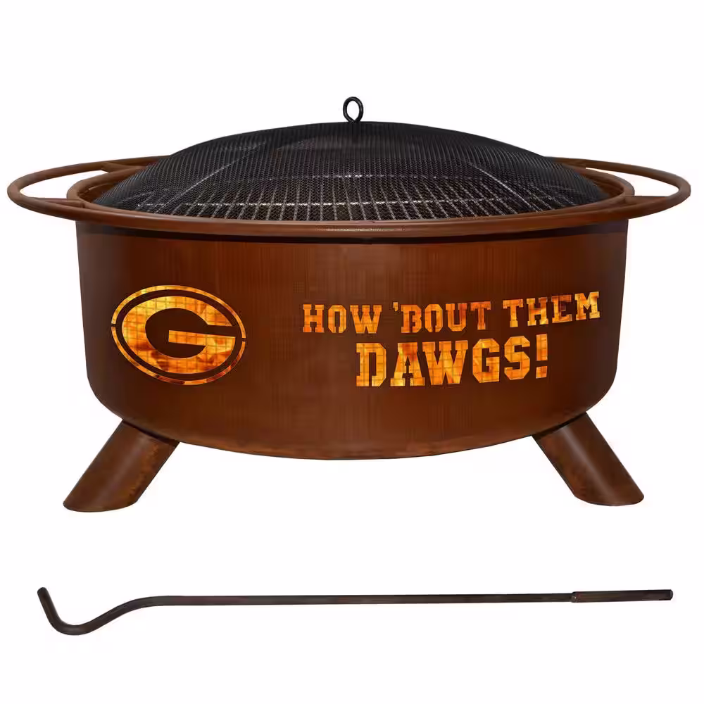 None Georgia 29 in. x 18 in. Round Steel Wood Burning Rust Fire Pit with Grill Poker Spark Screen and Cover