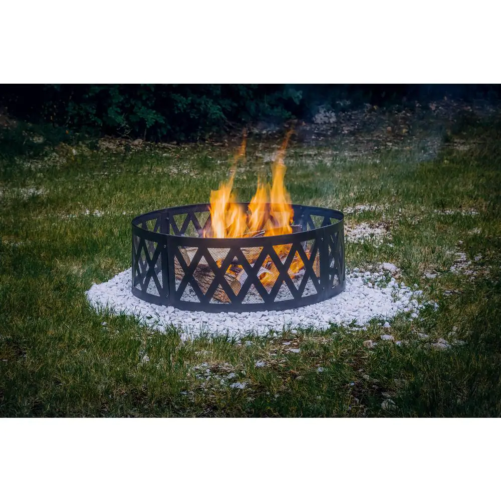 Pleasant Hearth 36 in. x 12 in. Round Steel Wood Burning Lattice Fire Ring in Black