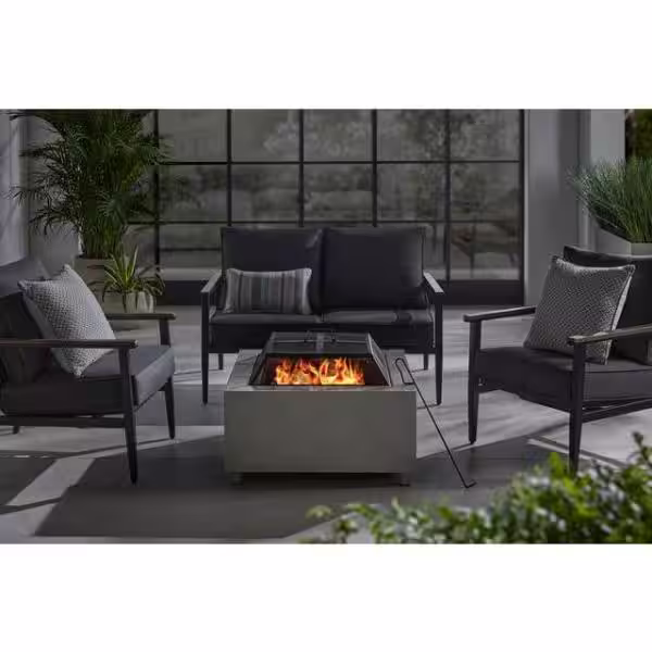Hampton Bay Nickleby 33 in. Cube Steel Gray Low Smoke Wood Burning Fire Pit with Stainless Steel Bowl and Concrete Tile Top