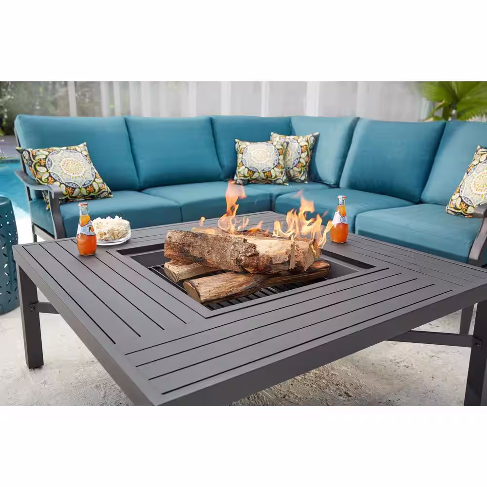 Hampton Bay 43.50 in. Aluminum Fire Pit Table in Black