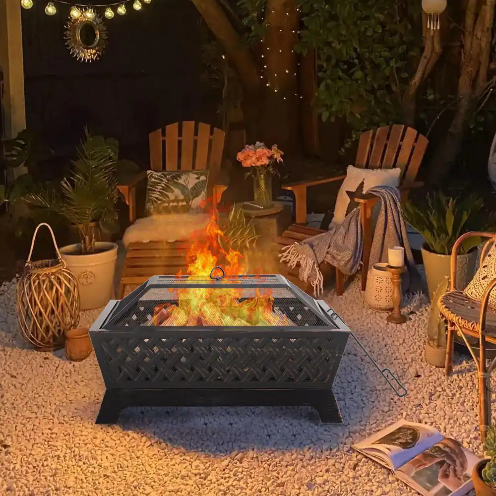 None 33.9 in. L x 24 in. W x 12.7 in. H Antiqued Knit Pattern Rectangle Metal Wood Fire Pit