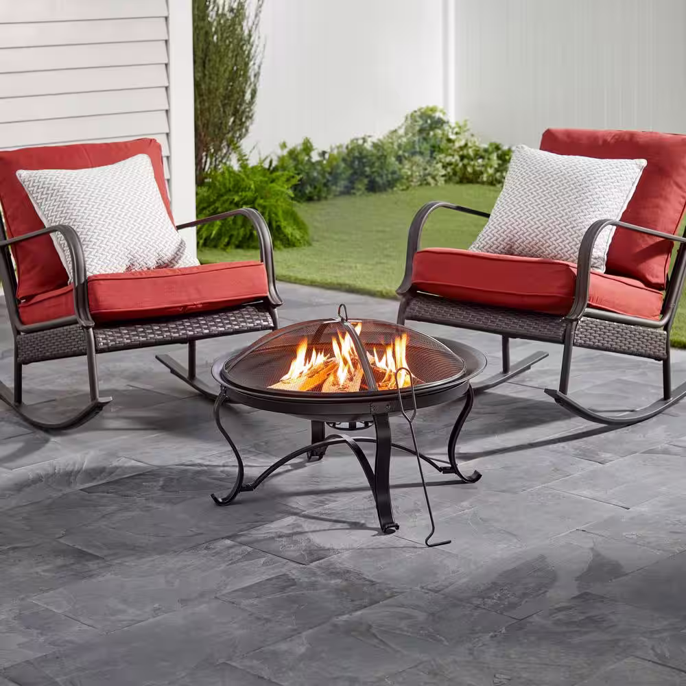 Hampton Bay Windgate 40 in. Dia. Round Steel Wood Burning Fire Pit with Spark Guard