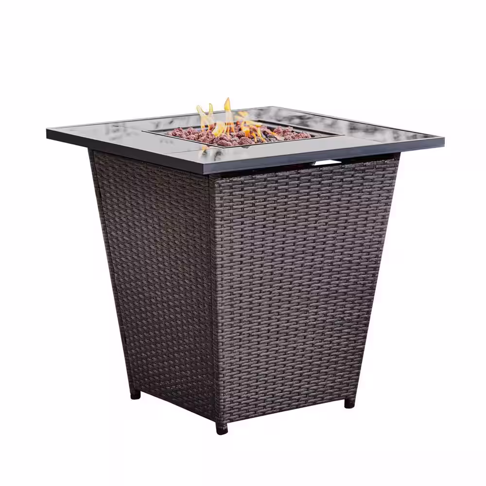 Teamson Home 30 in. Rattan Base Tempered Glass Top Propane Firepit with Lava Rock, Metal Lid and Regulator