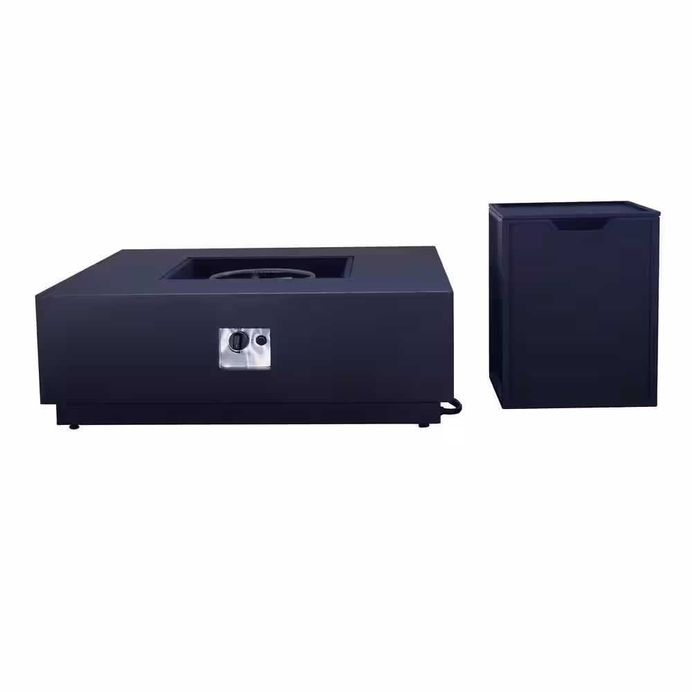 Noble House Abdullah 40 in. x 13.5 in. Square Iron Propane Fire Pit with Tank Holder