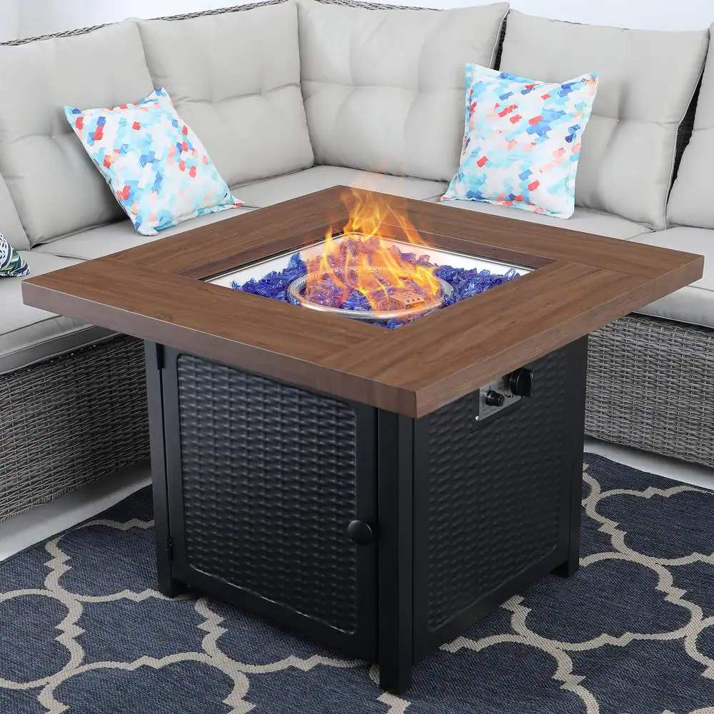 Oakville Furniture 36 in. Outdoor Square Brown Wicker Aluminum Gas Propane Fire Pit Table In Tempered Glass W/Fire Glass
