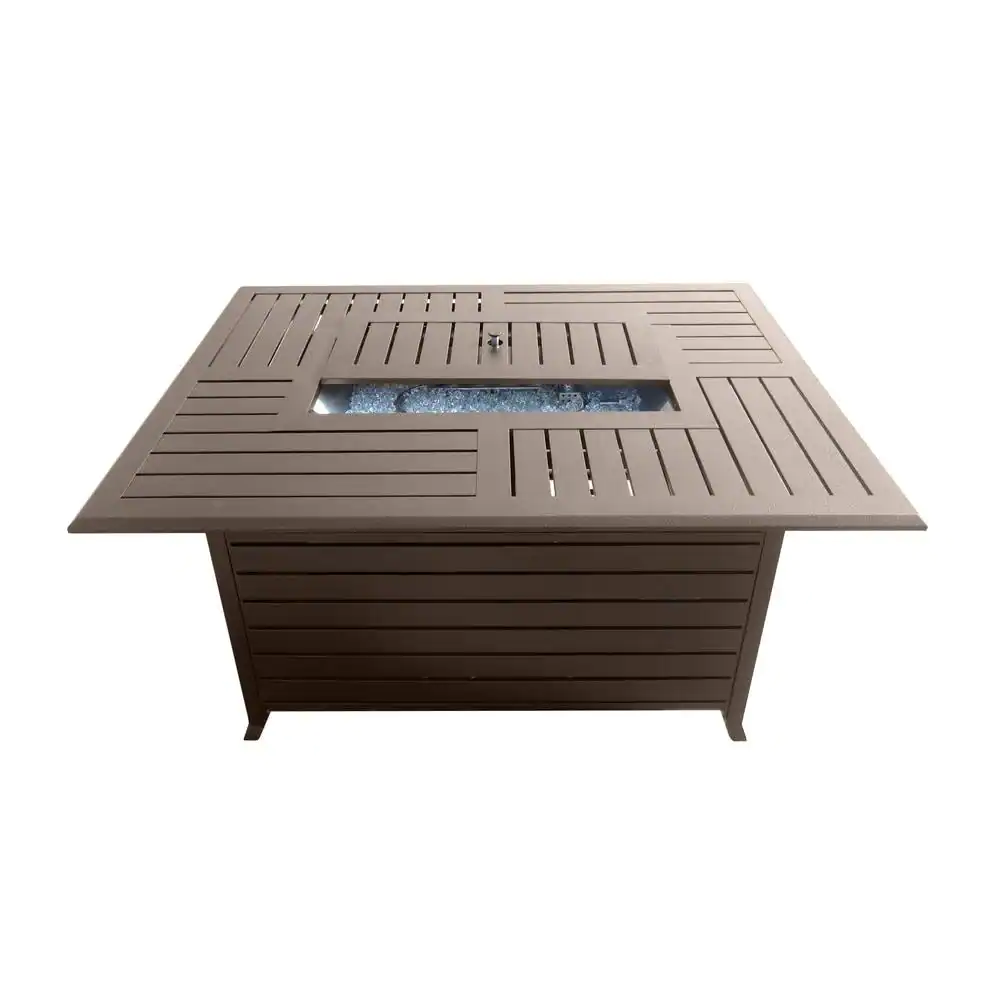 Hampton Bay Belize 51 in. W x 25 in. H Rectangle Aluminum Liquid Propane Fire Pit in Dark Brown