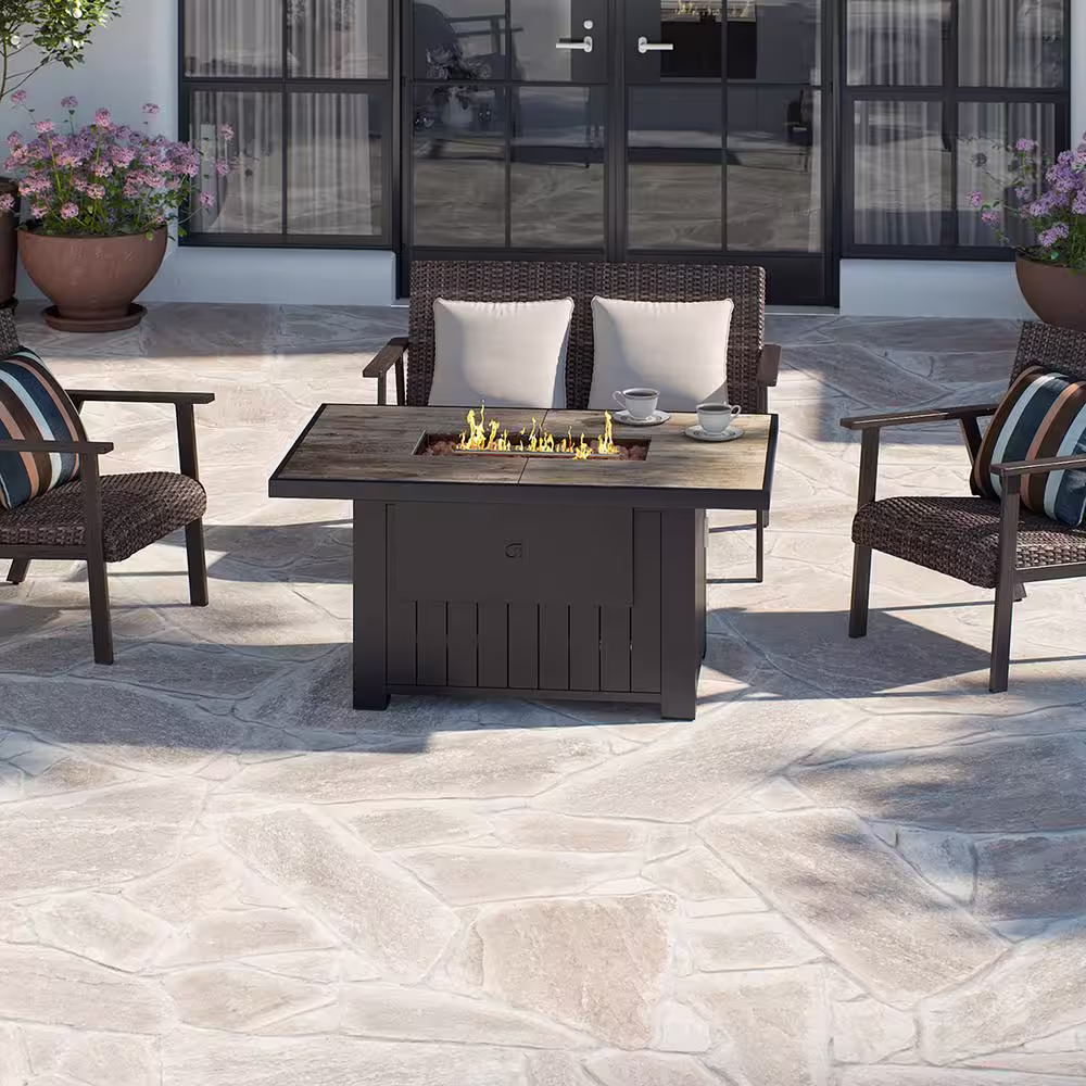 Hampton Bay Peyton 35 in. W x 24 in. H Square MGO Liquid Propane Fire Pit in Distressed Brown