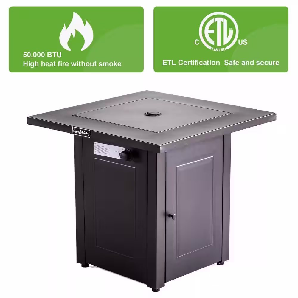 Legacy Heating 28 in. x 24 in. H 50000 BTU Square Steel Propane Black Fire Pit Table