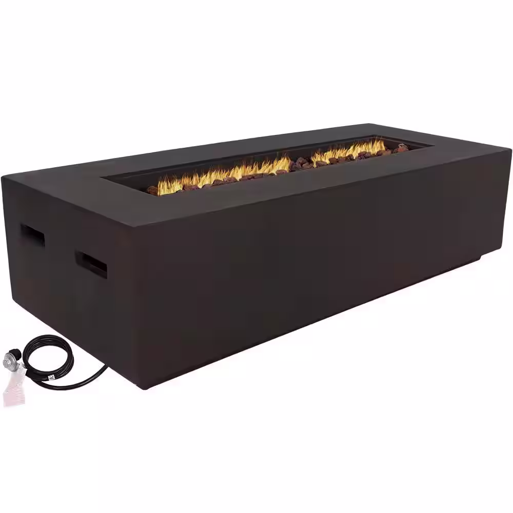 Sunnydaze Decor 56 in. Rectangular Fiberglass Propane Gas Fire Pit Coffee Table with Lava Rocks in Brown