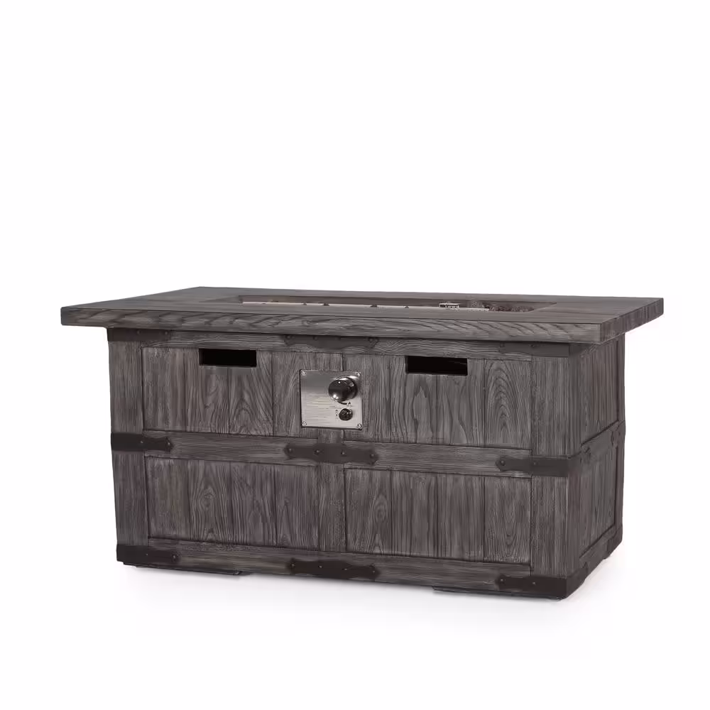 Noble House Alejandro Gray Wood Textured Stone Fire Pit