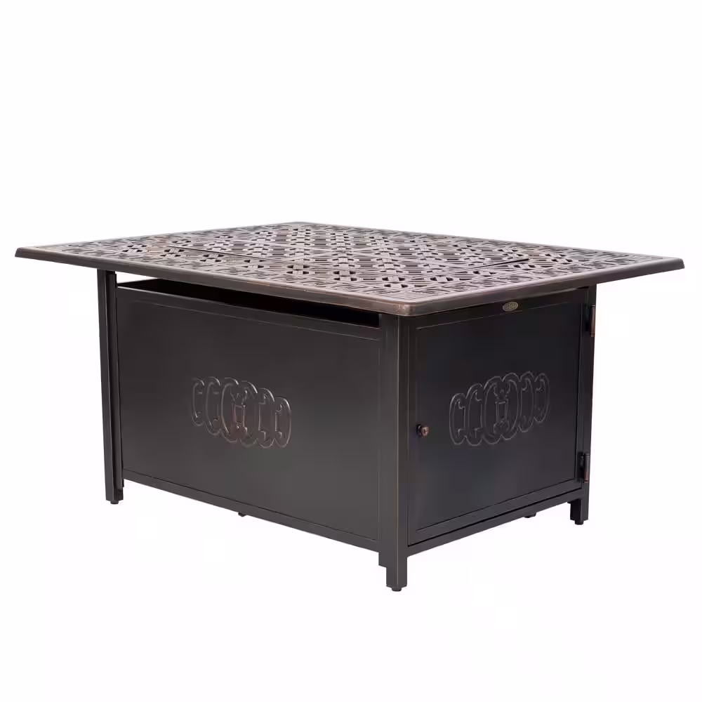 Hiland 35 in. x 24 in. Rectangle Cast Aluminum Propane Fire Pit in Hammered Bronze with Scroll Design