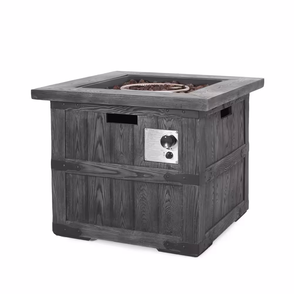 Legacy Heating 28 in. Square 50000 BTU Steel Propane Fire Pit Table in Wood Look