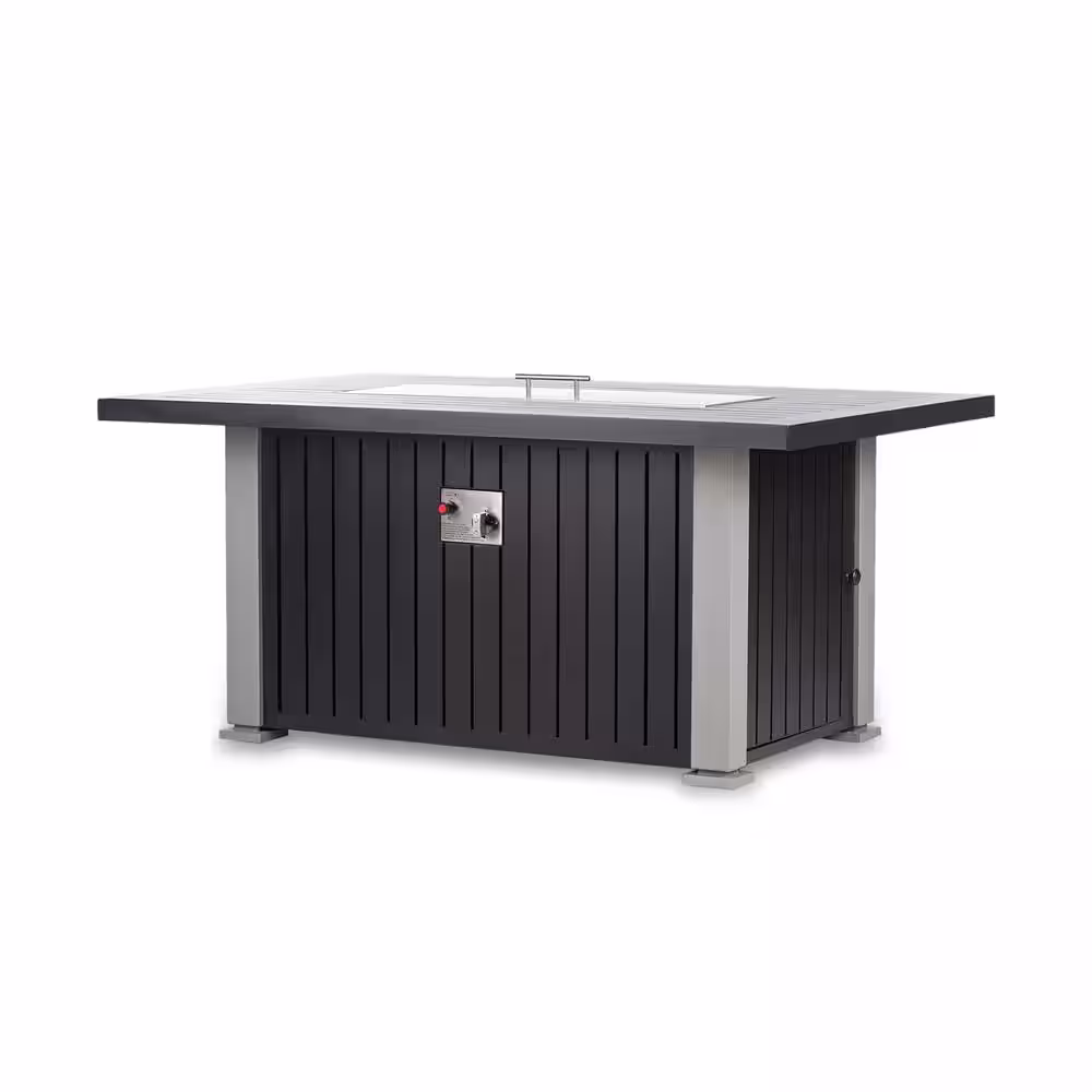 DIRECT WICKER Maxwell 52 in. x 35 in. Aluminum Rectangle Chat Propane Fire Pit Table in Gray with Cover