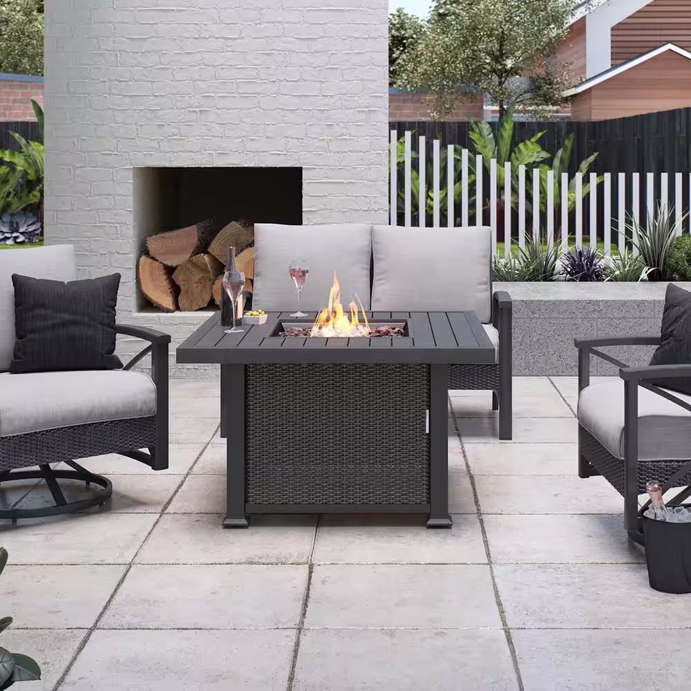 Hampton Bay Vendome 42 in. x 24 in. Square Aluminum Propane Fire Pit in Grey
