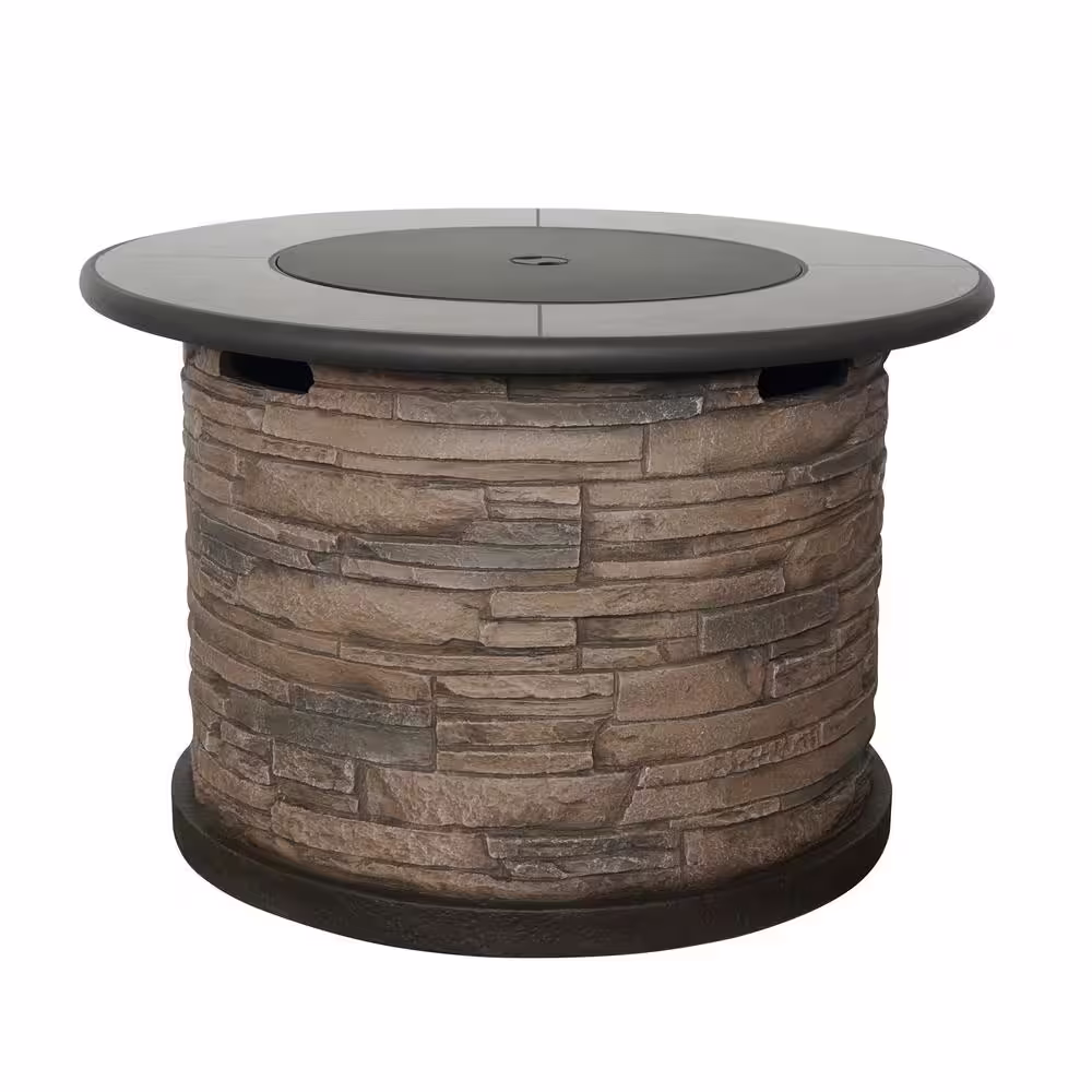 Bond Newcastle Envirostone 36 in. Round Gas Fire Table in Brown