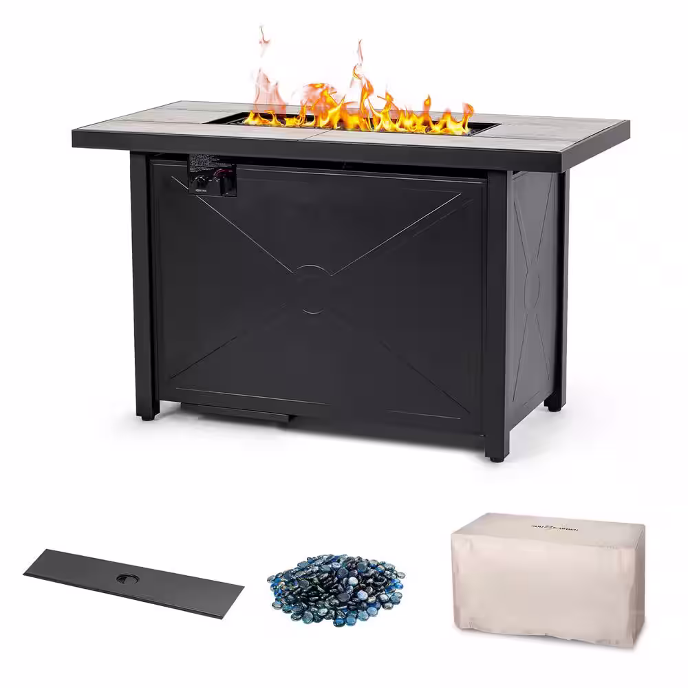 Nuu Garden 50,000 BTU 42 in. Square 24.8 in H Ceramic Propane Gas Fire Pit Table with Cover