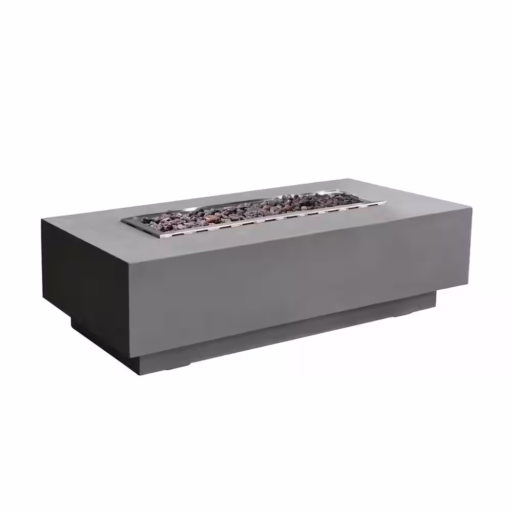 Elementi Granville 60 in. x 27 in. x 17 in. Rectangle Concrete Natural Gas Fire Pit Table in Light Gray