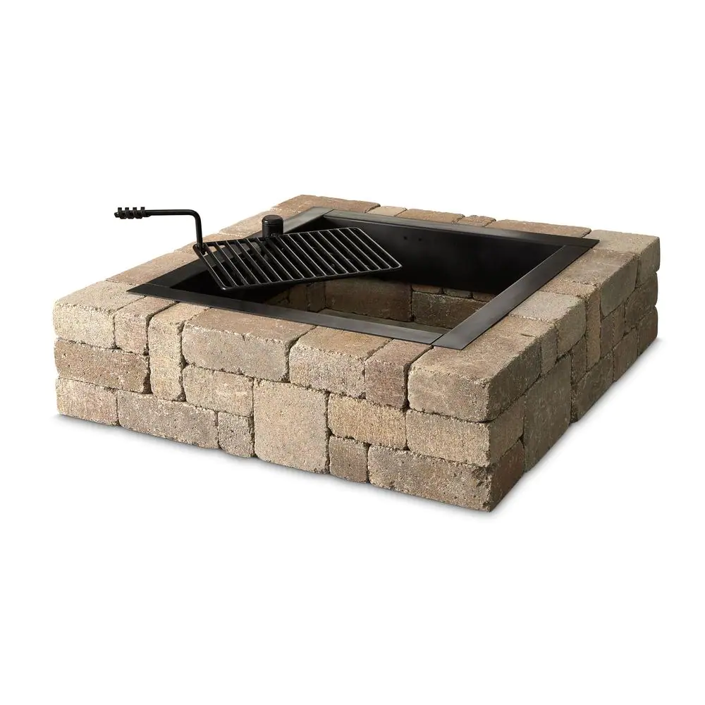 Necessories Victorian 48 in. x 12 in. Square Concrete Wood Burning Santa Fe Fire Pit Kit with Cooking Grate