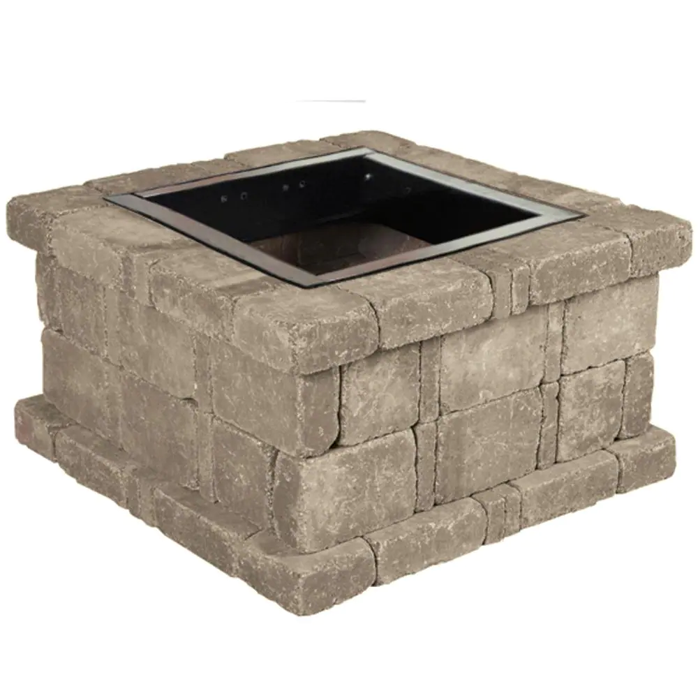 Pavestone RumbleStone 38.5 in. x 21 in. Square Concrete Fire Pit Kit No. 3 in Greystone