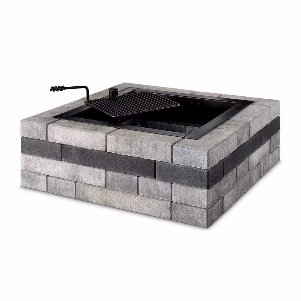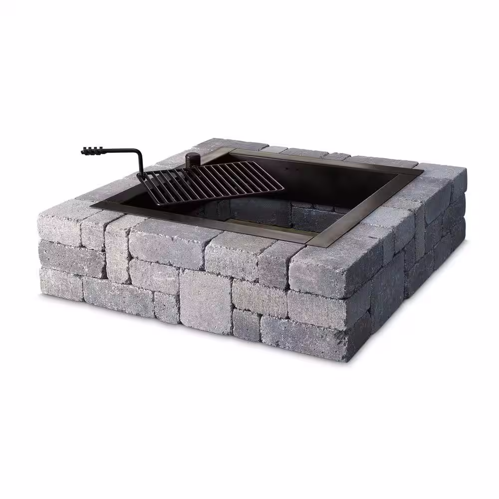 Necessories Victorian 48 in. x 12 in. Square Concrete Wood Burning Bluestone Fire Pit Kit with Cooking Grate