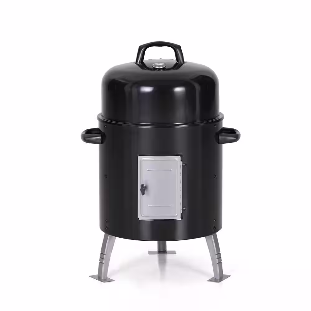 None 18 in. Charcoal Smoker in Black with Thermometer and Meat Probe