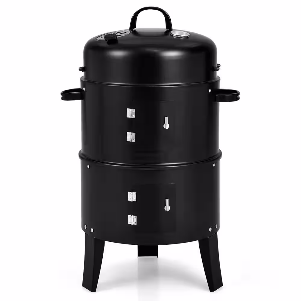 Gymax 3-In-1 Vertical Charcoal BBQ Smoker Grill Separable Black with Built-In Thermometer