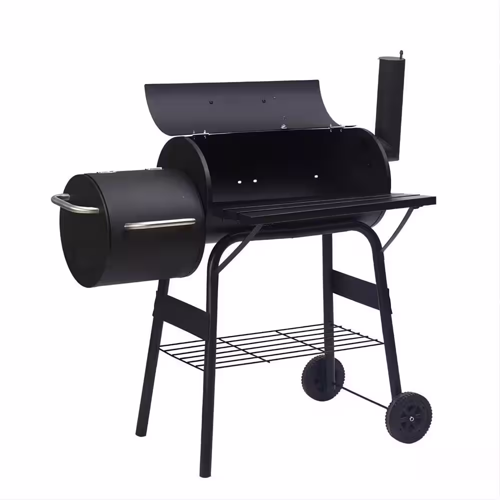 None Classic Charcoal Grill in Black with Offset Smoker