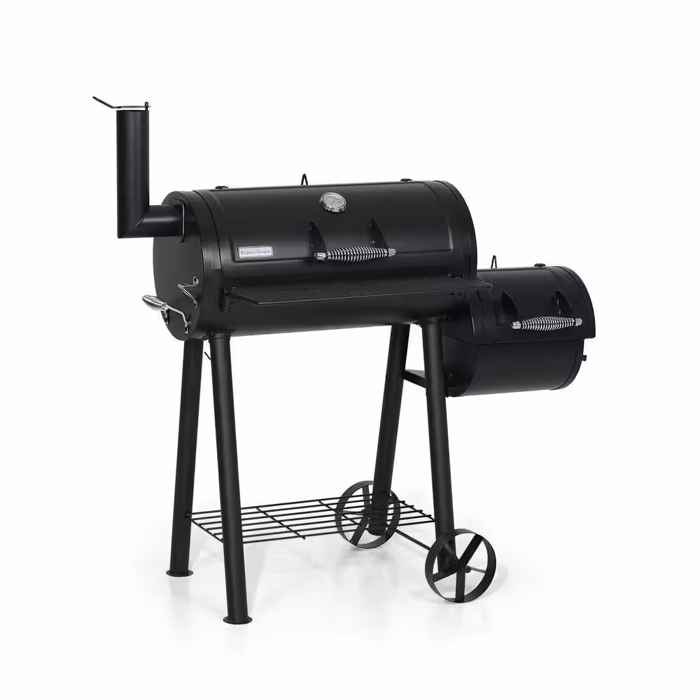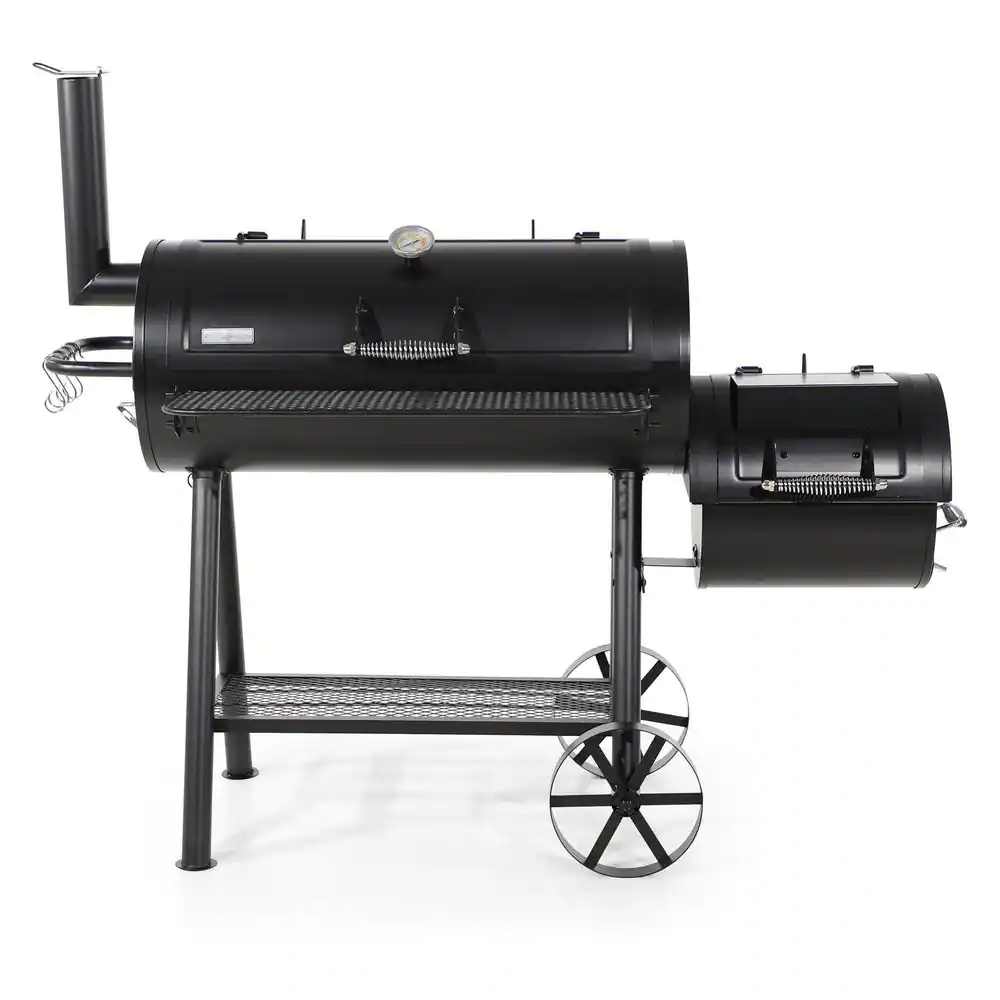 None Extra Large Heavy-Duty Offset Charcoal Smoker in Black
