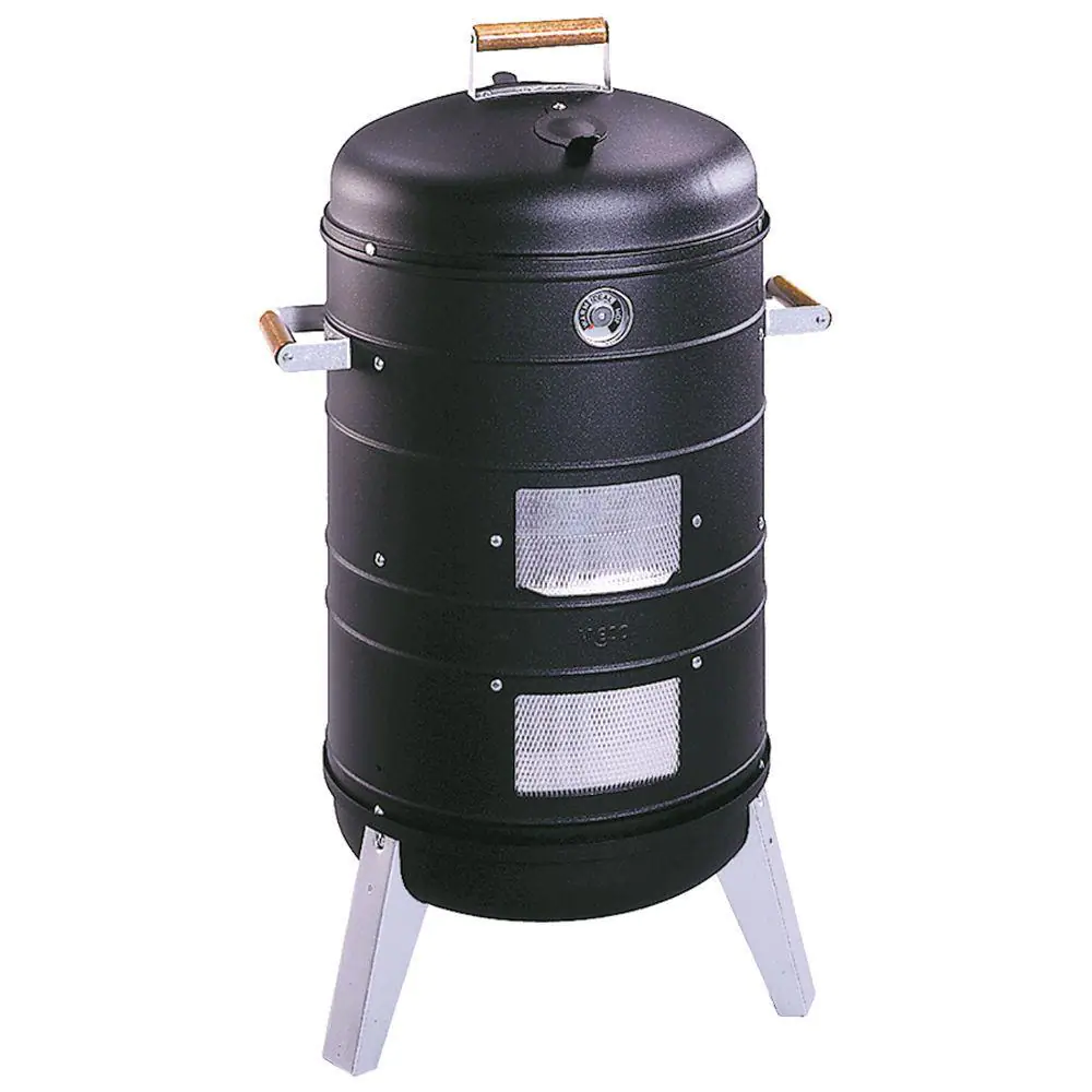 None Vertical 16 in. Steel Charcoal Smoker, Heavy-Duty Round BBQ Grill for Outdoor Cooking in Black