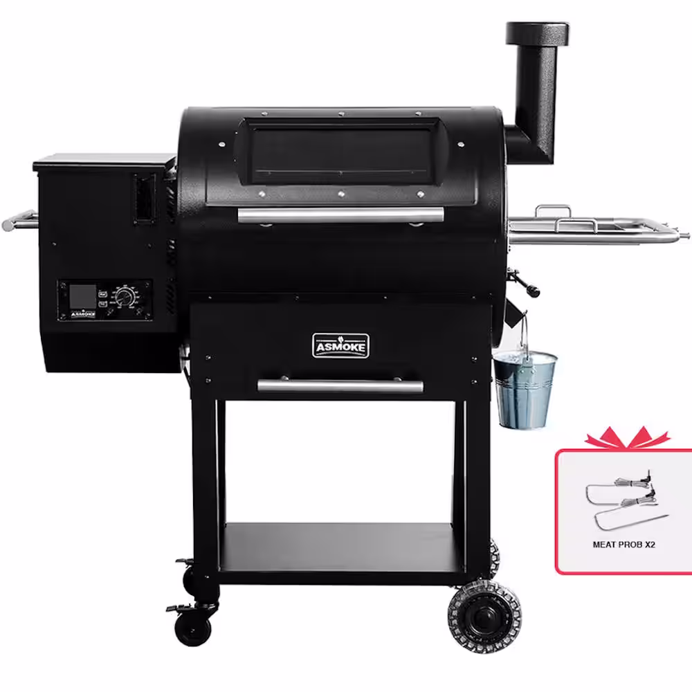 ASMOKE 700 sq. in. Skylights Wood Pellet Grill and Smoker with Smart Meat Thermometer in Black