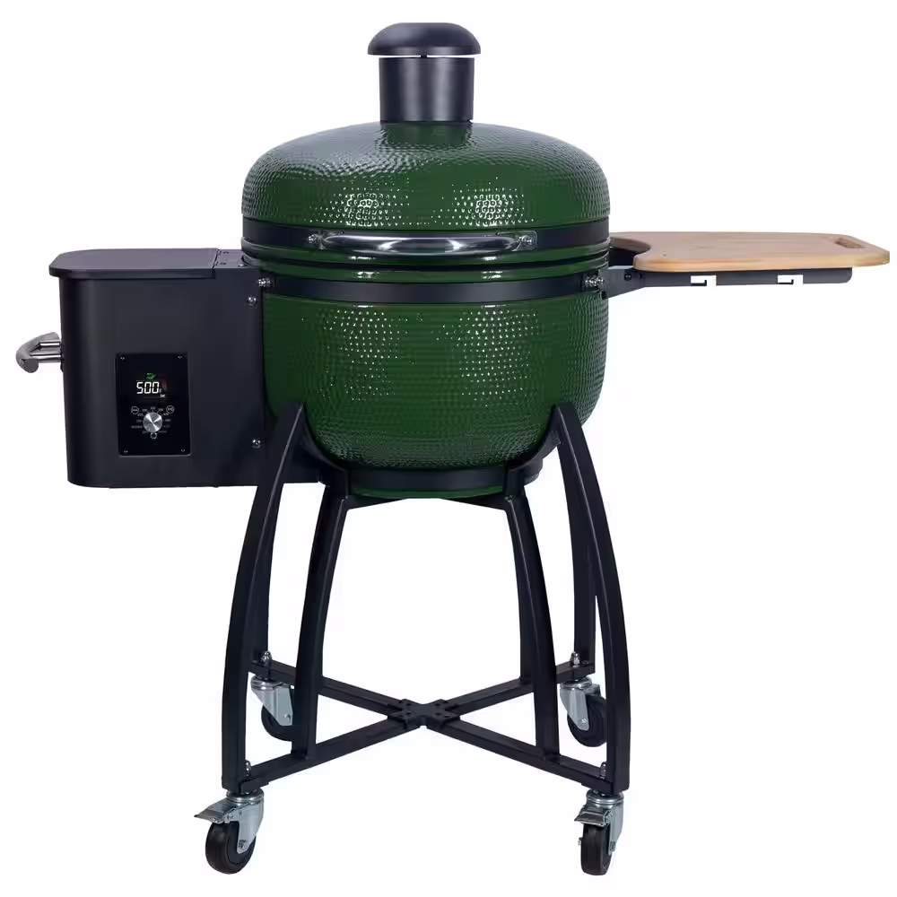 None 24 in. 4-in-1 Smoked Ceramic Pellet Grill in Dark Green with 19.6 in. Dia Gridiron Double Ceramic Liner