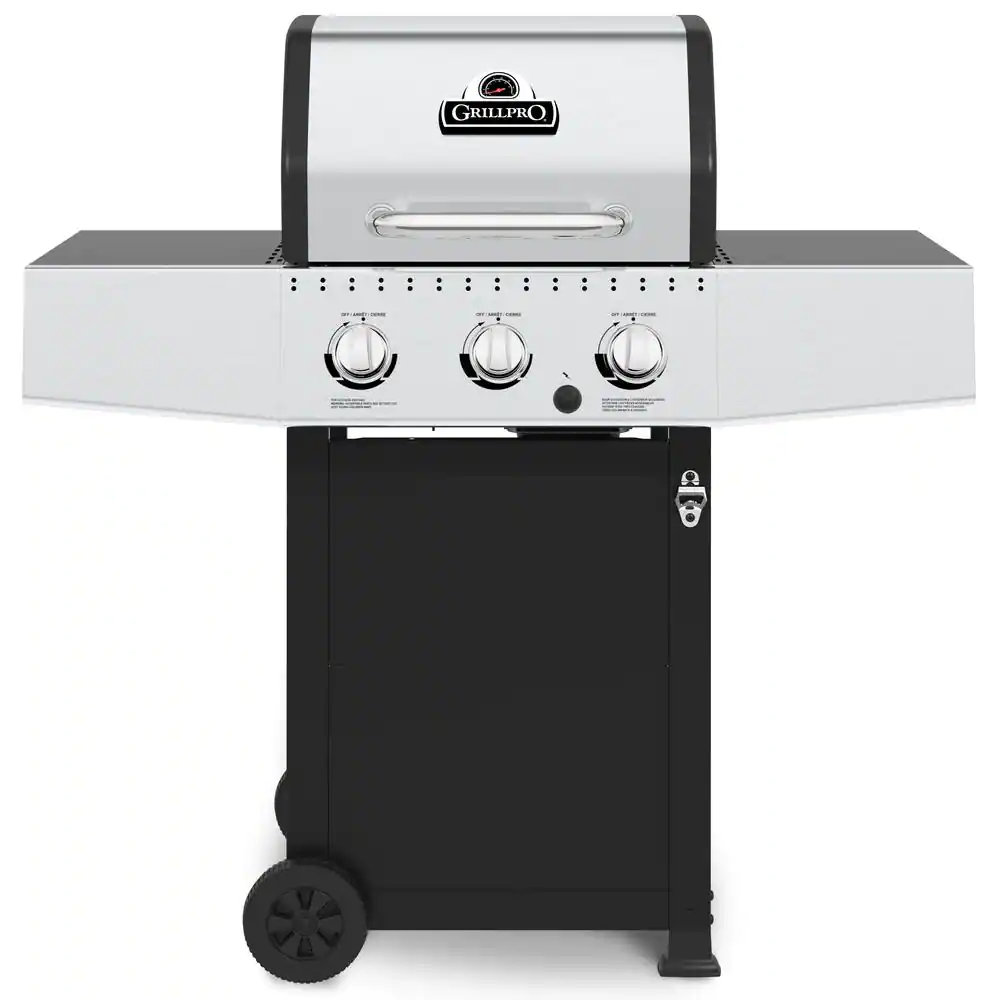 GrillPro 3-Burner Propane Gas Grill Cart in Stainless Steel