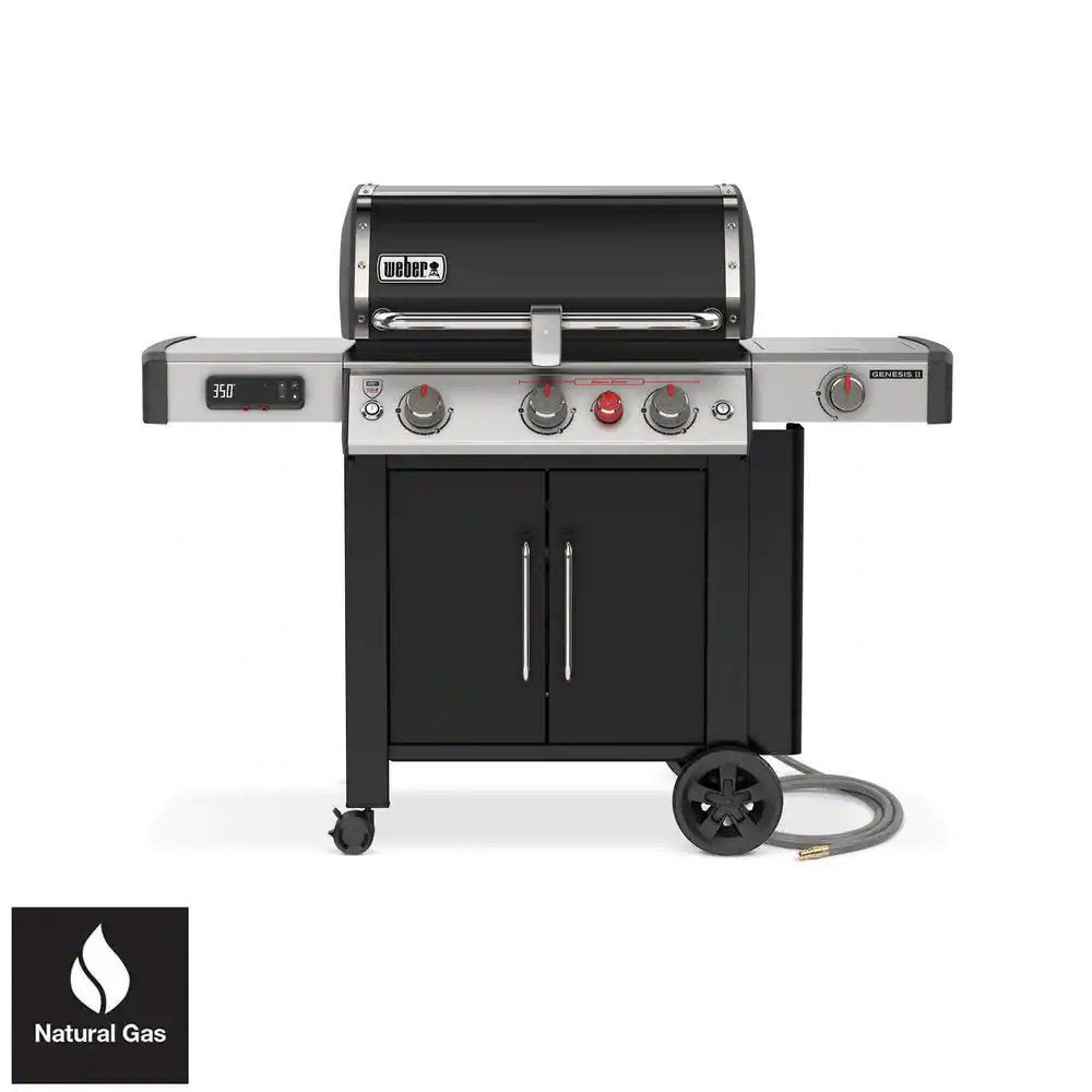 Weber Genesis II E-330 3-Burner Natural Gas Grill in Black with Built-In Thermometer and Side Burner