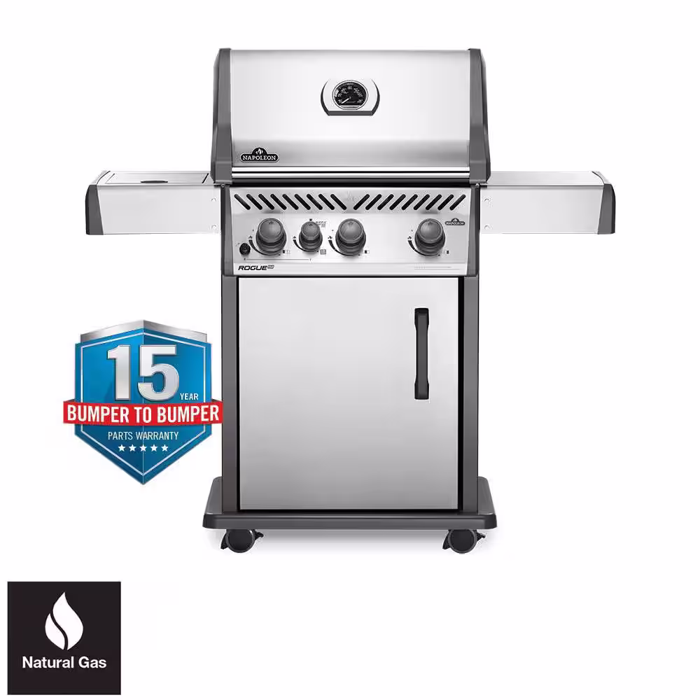 NAPOLEON Rogue 3-Burner Natural Gas Grill with Infrared Side Burner in Stainless Steel
