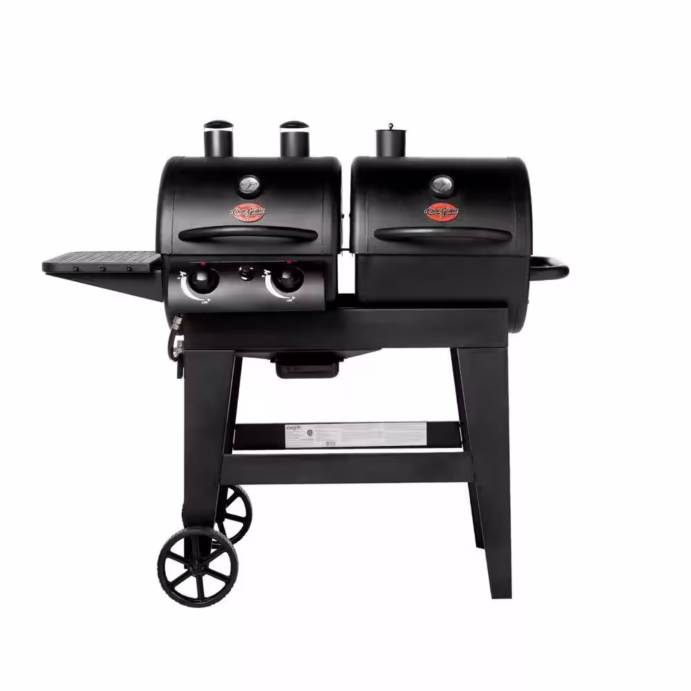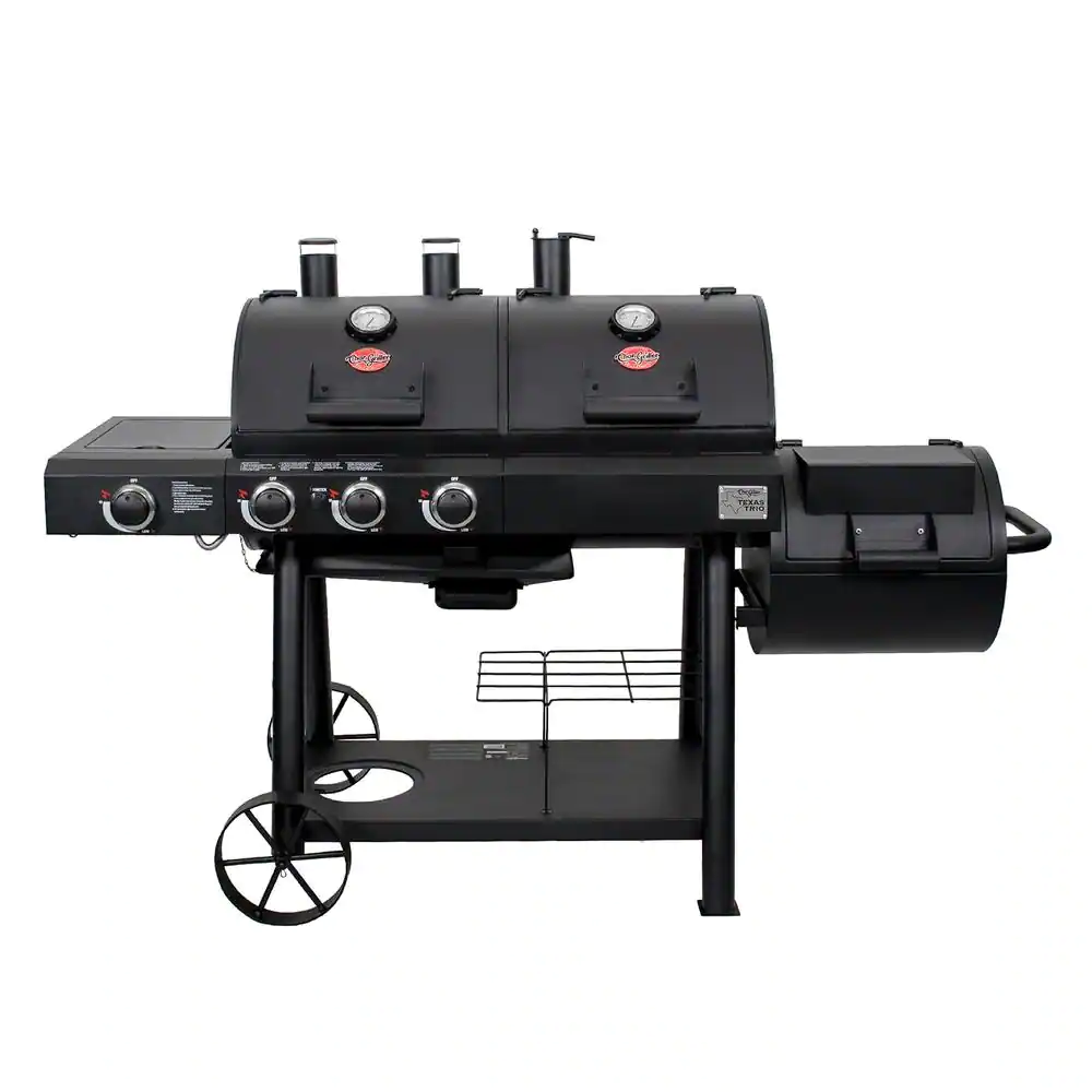 Char-Griller Texas Trio 4-Burner Dual Fuel Grill with Smoker in Black