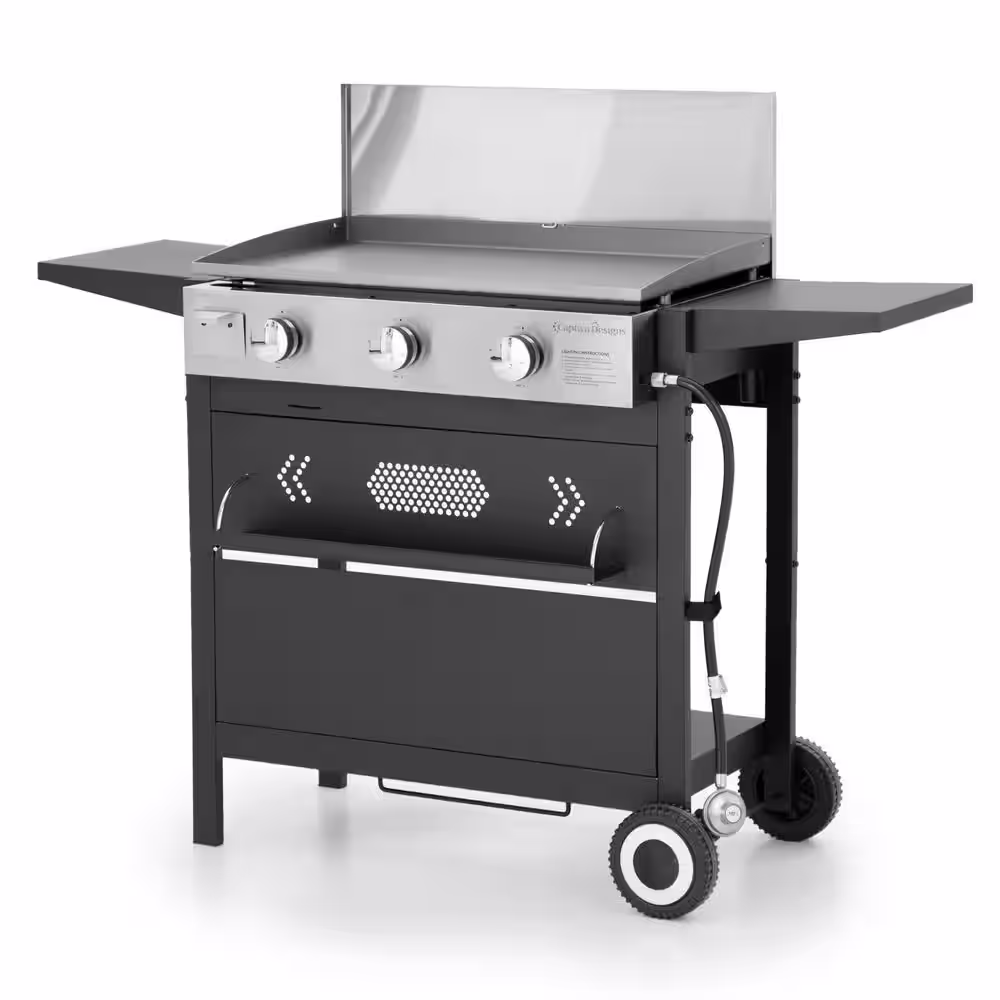 None 3-Burner Portable Propane Gas Griddle in Black with Cart and Lid