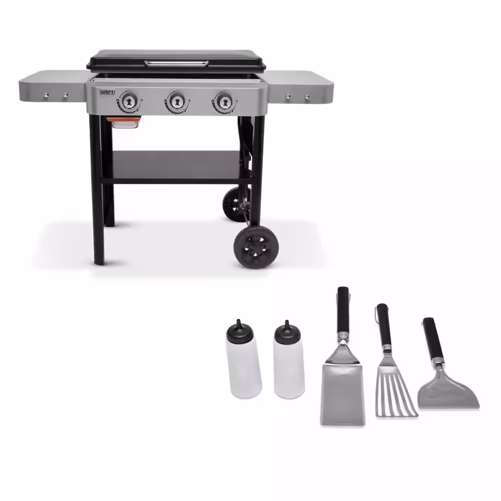 Weber 3 Burner Propane Gas Grill 28 in. Flat Top Griddle Combo with Griddle Essential Set