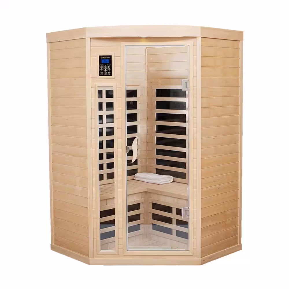 None 2-Person Pentagonal Hemlock Sauna Room with LED Reading Lights